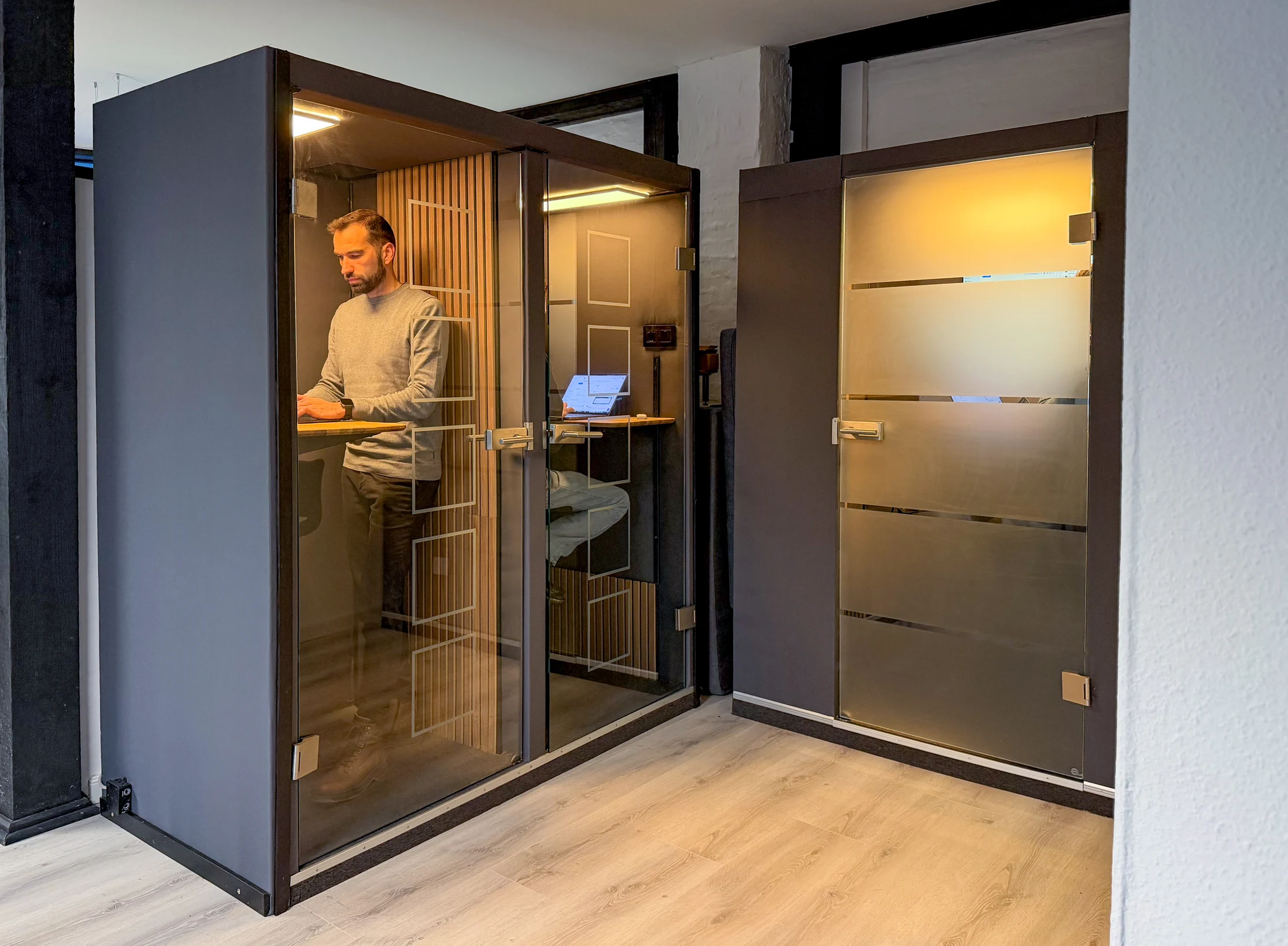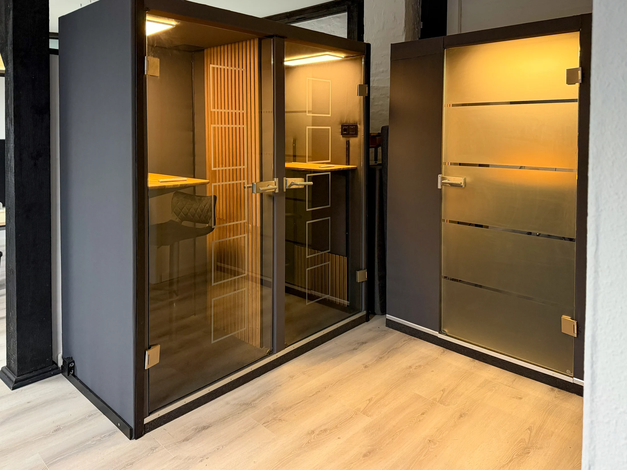 Für Telefonate und Besprechungen stehen Telefonboxen bereit.